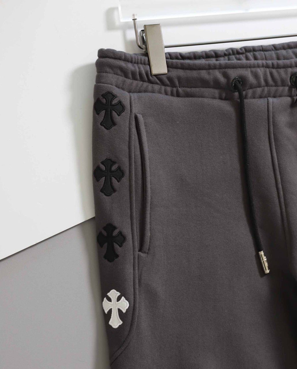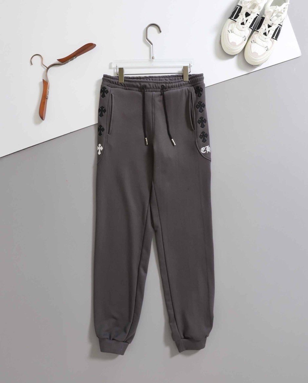 - 상의 전면 가슴과 하의 옆면에는 브랜드의 상징적인 크로스 로고가 특징입니다.