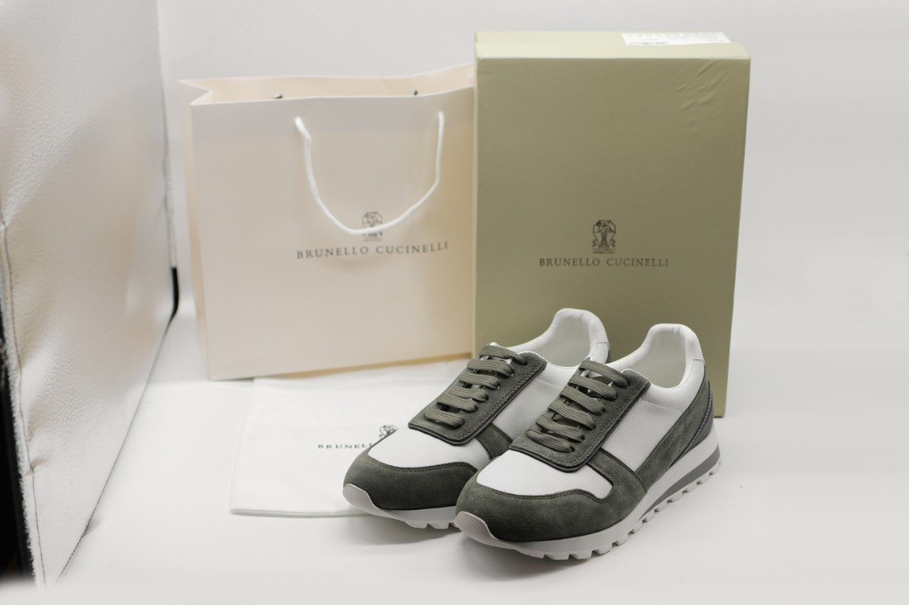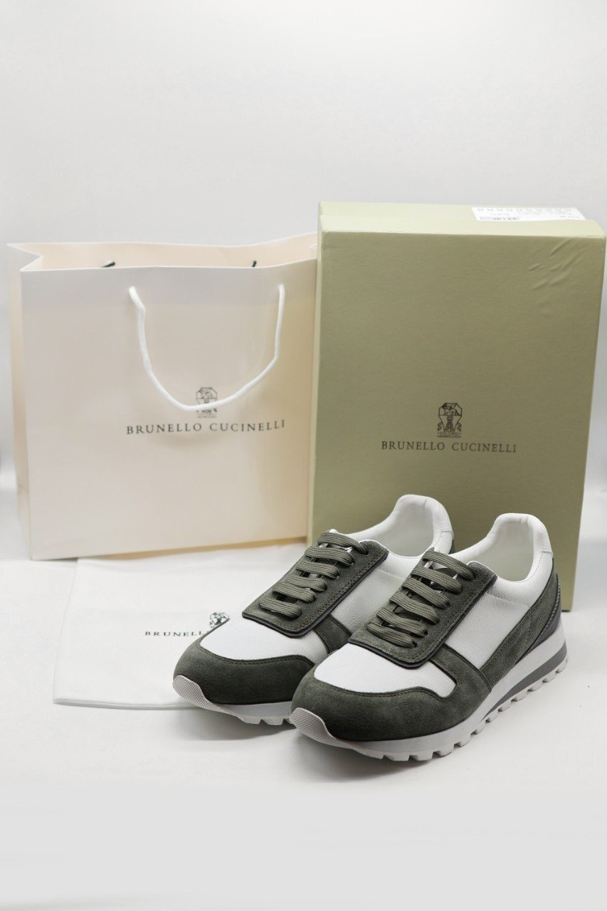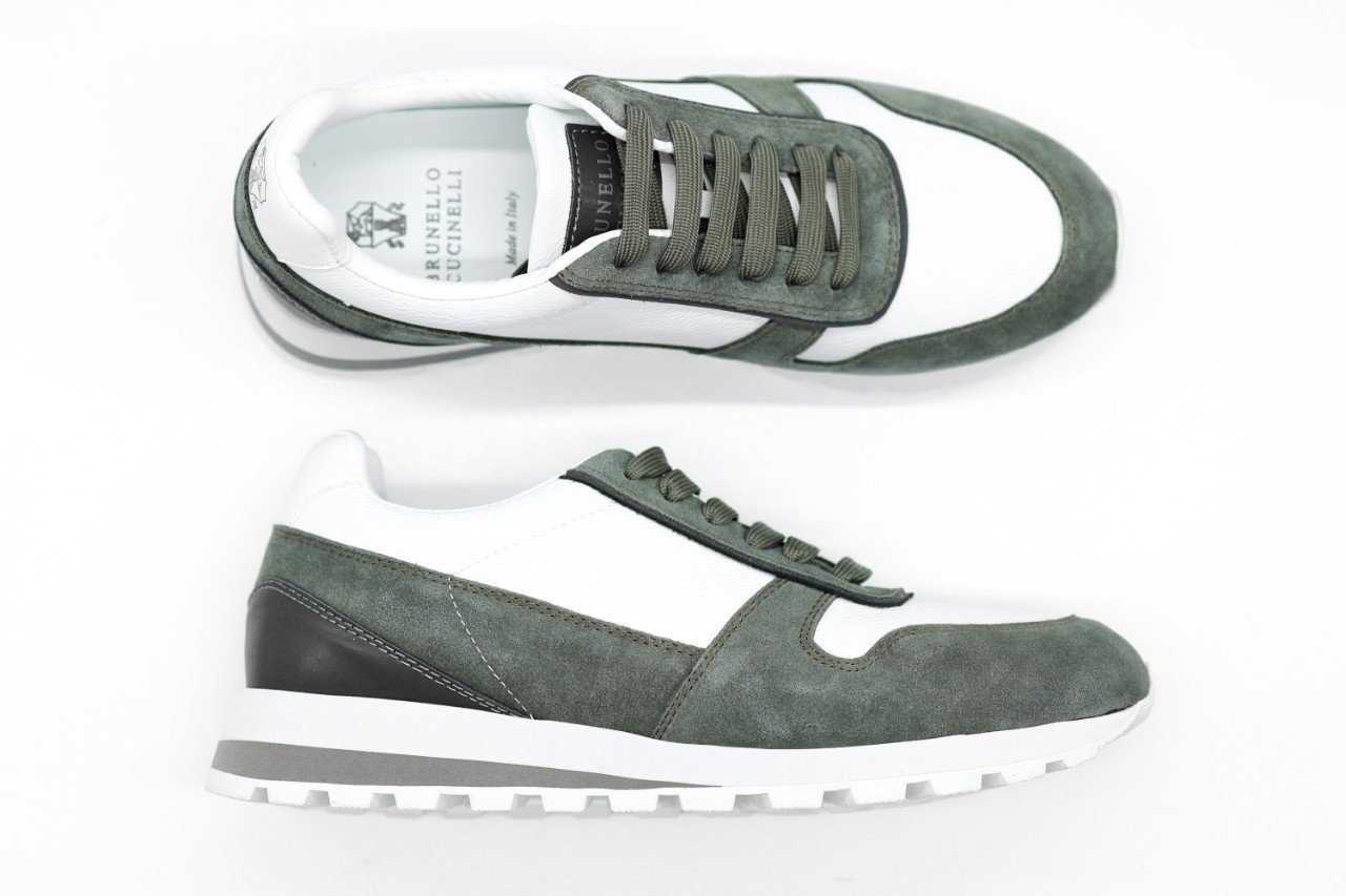 브루넬로쿠치넬리 스웨이드 레더 올리브 스니커즈