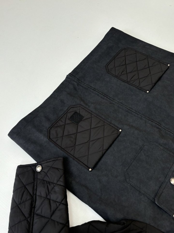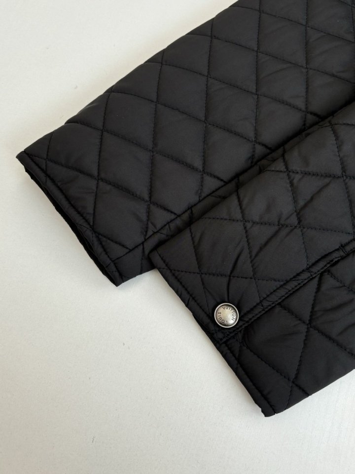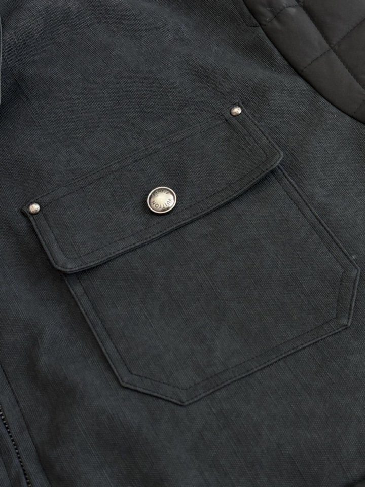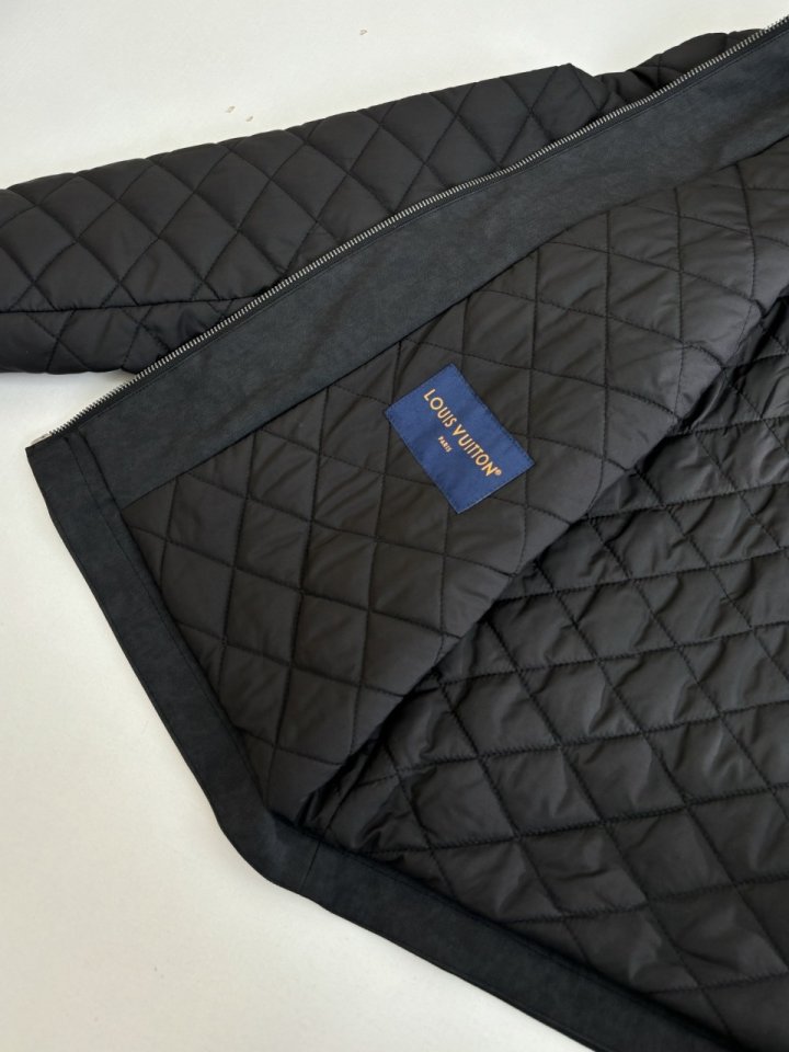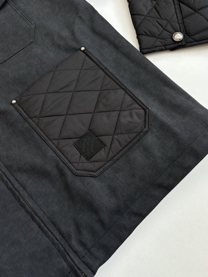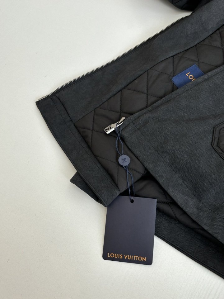워크웨어에서 영감을 얻어 섬세하게 구현한 풍부한 디테일이 돋보이는 짙은 그레이 색상의 블루종으로 트롱프뢰유 리넨 효과를 준 카프스킨 소재의 바디 부분. 나일론 소재의 소매, 패치 포켓 및 안감은 루이 비통 트렁크 내부를 연상시키는 다이아몬드 패턴으로 가볍게 퀼팅 처리한 아이템. 왼쪽 하단의 포켓에 장식해 하우스 고유의 분위기를 선사하는 블랙 색감의 Marque L.Vuitton Déposée 가죽 패치. 스타일리시한 무드를 더하는 실버 색조의 리벳으로 마감했습니다.