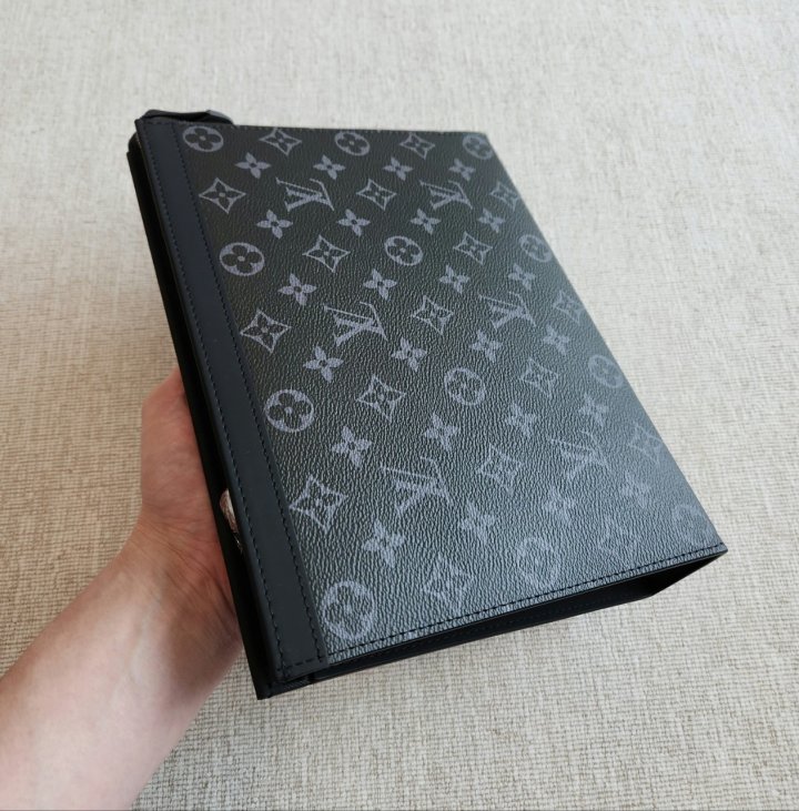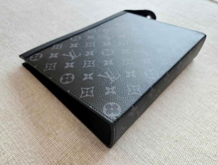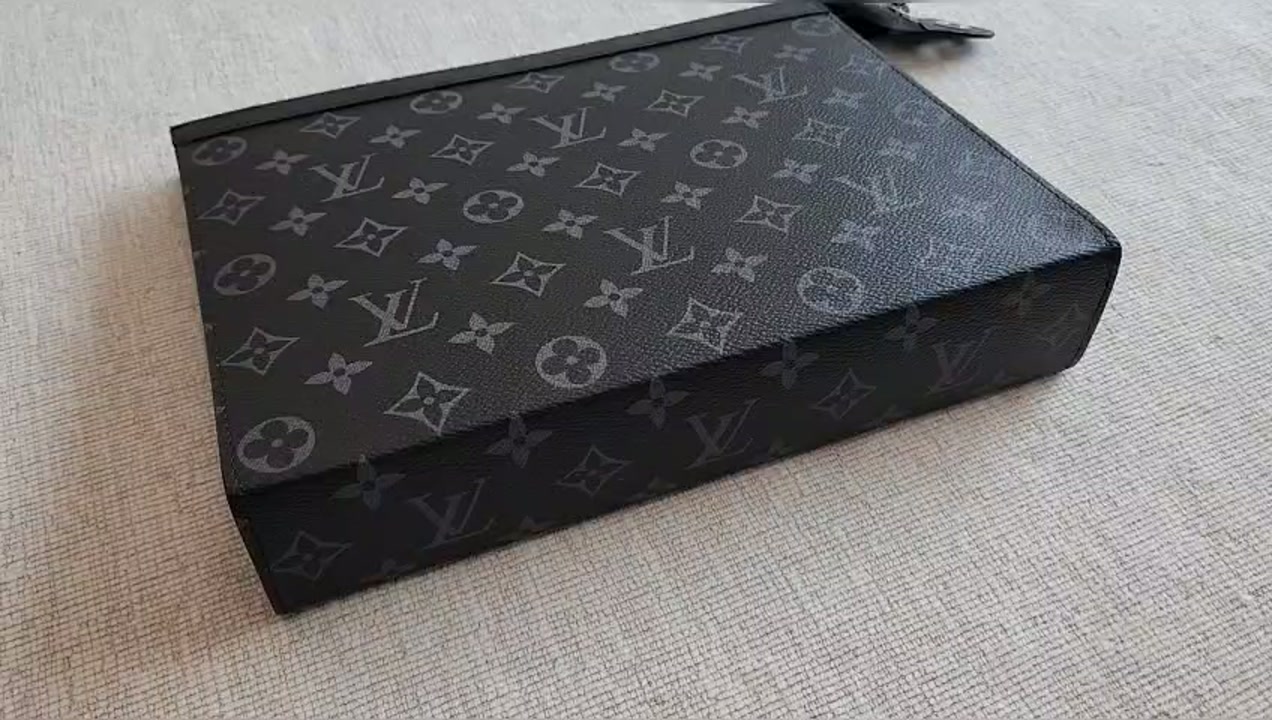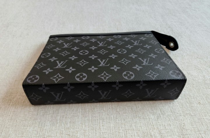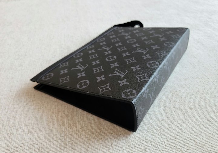루이 비통의 새로운 대표 소재인 검정색과 회색 조합의 모노그램 이클립스 캔버스로 처음 소개하는 포쉐트 보야주의 MM 모델입니다.