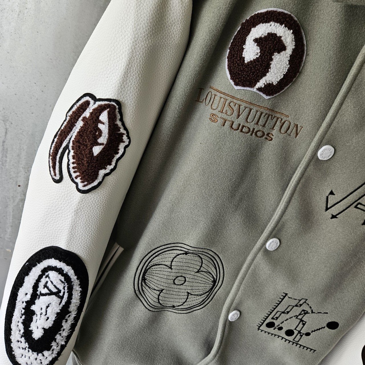 본 제품은 "루*비* 바시티 패치 블루종 자켓 으로써 정품 동일원단을 사용해 루이비통전문제작 공장에 오더를넣어 제작한 완벽한 상품입니다. 고급스러운 무드와 핏으로 편안하게 입으실 수 있으며 국내에서 흉내조차 내기 힘든 디테일이며 퀄리티 자부합니다.