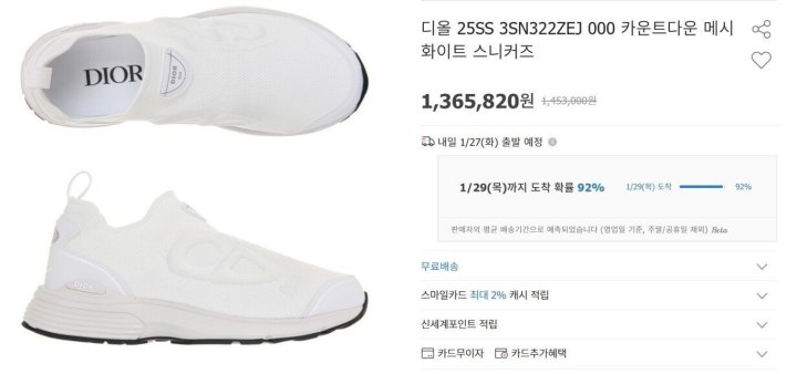국내재고상품 공휴일 제외 영업일 평균 2~3일 소요.