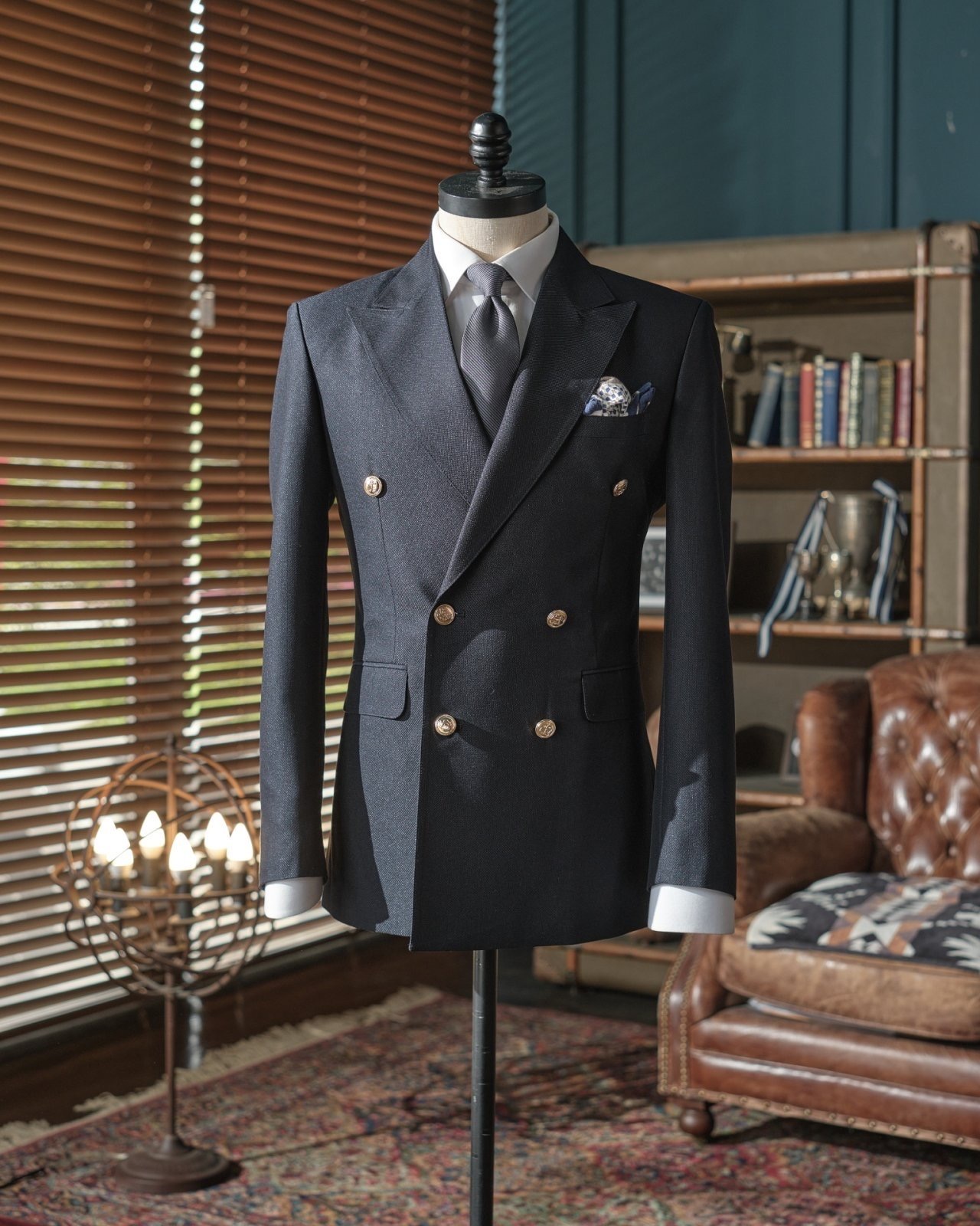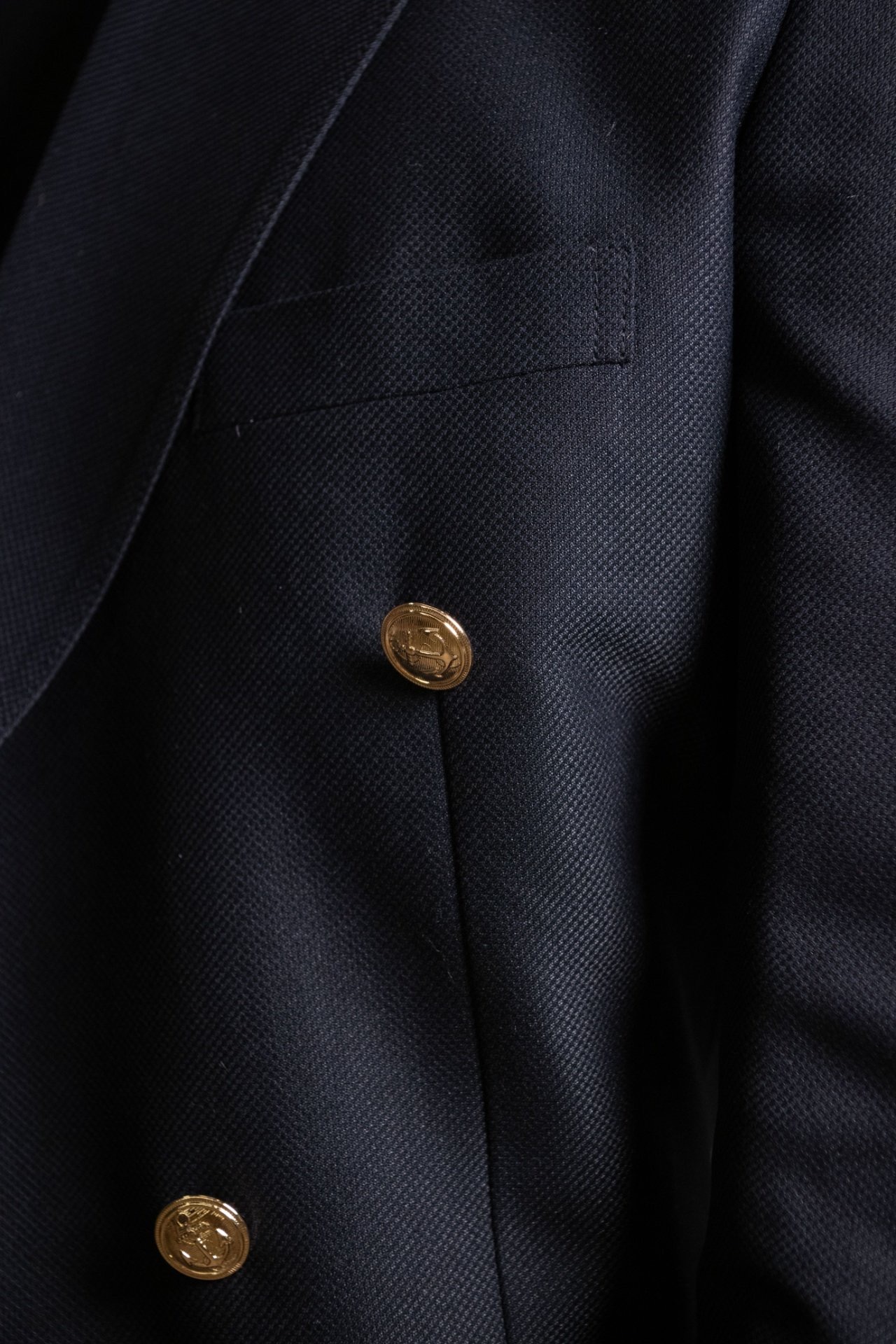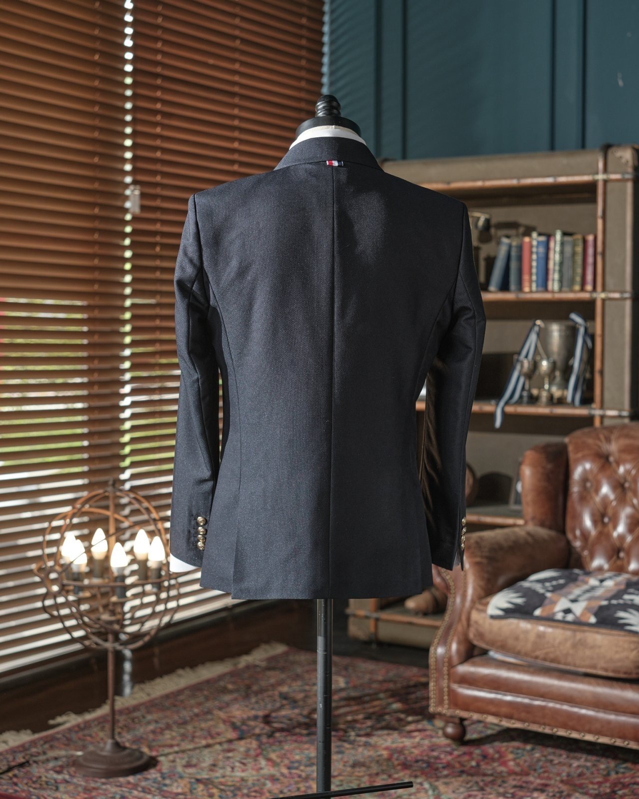 자연스러운 어깨 패턴과 라펠의 굴림 손목부분 의 금장단추