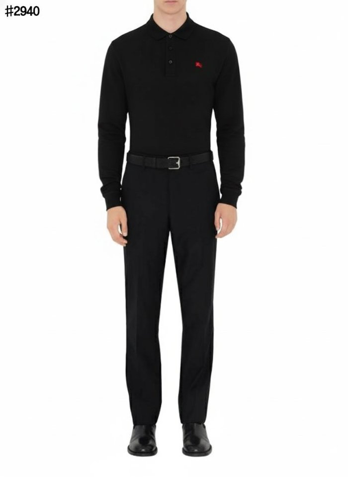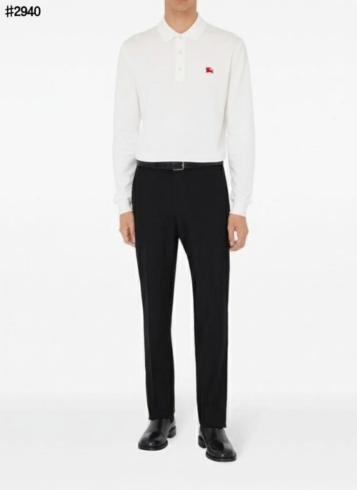 🍀 [BURBERRY] 버버리 EKD 자수 로고 베이직 롱 슬리브 피케 티셔츠 🍀