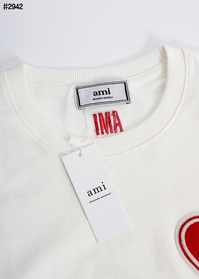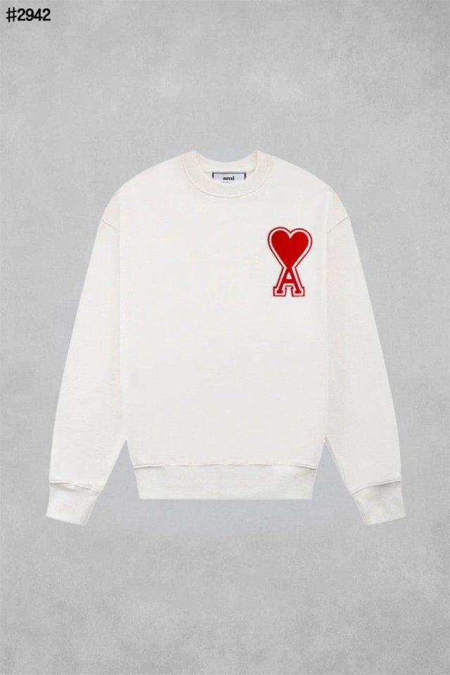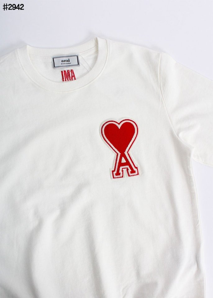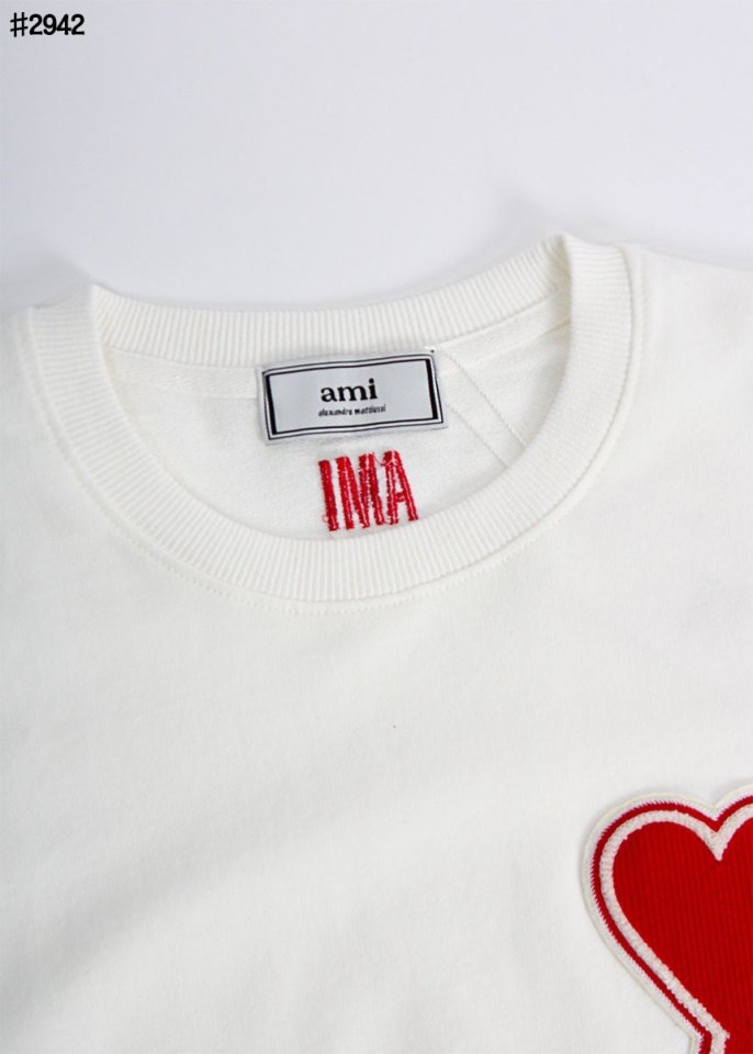 아미 빅 하트 자수 로고 패치 라운드 맨투맨 티셔츠 🍀