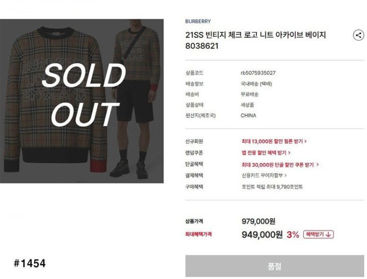 🍀 [BURBERRY] 버버리 빈티지 체크 로고 라운드 니트 🍀