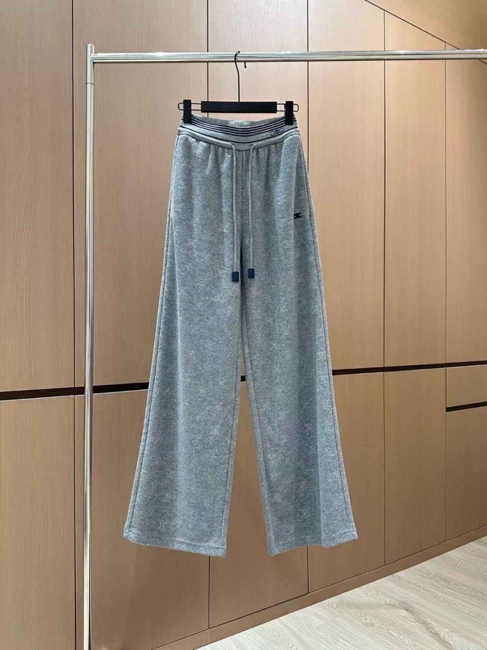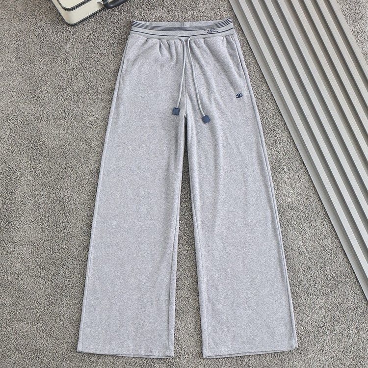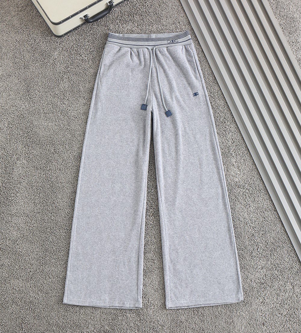 여성 자수로고 벨보아 스판 밴딩 와이드팬츠