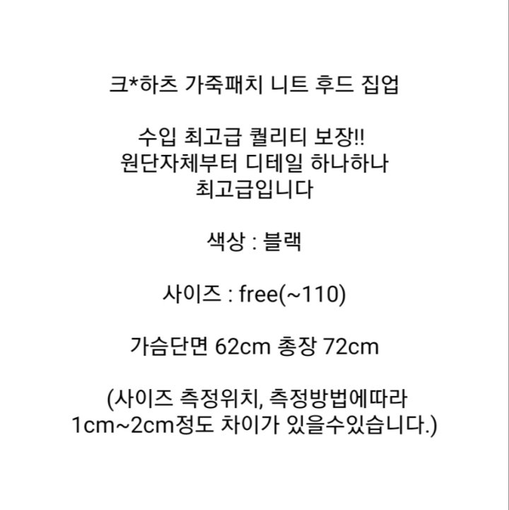- 수령후 사이즈교환이 불가피한 경우 (이는 구매자의 부주의로 왕복배송비를 부담해 주셔야합니다.)