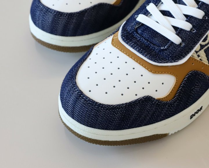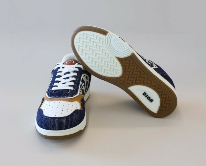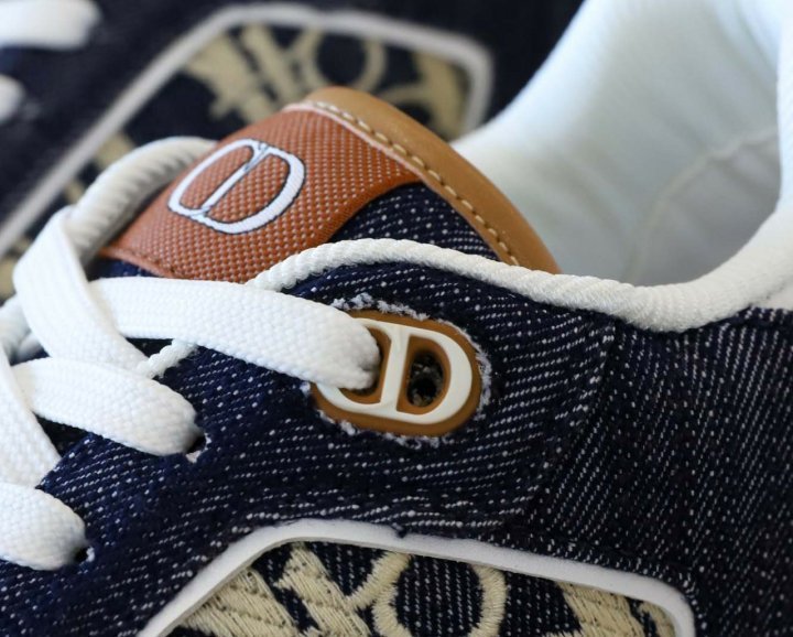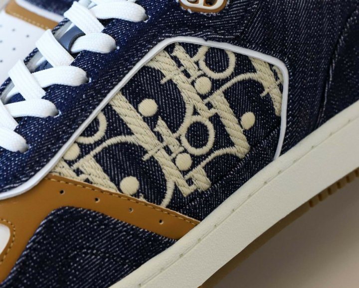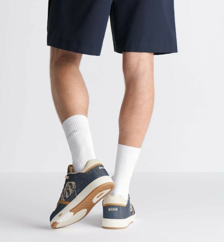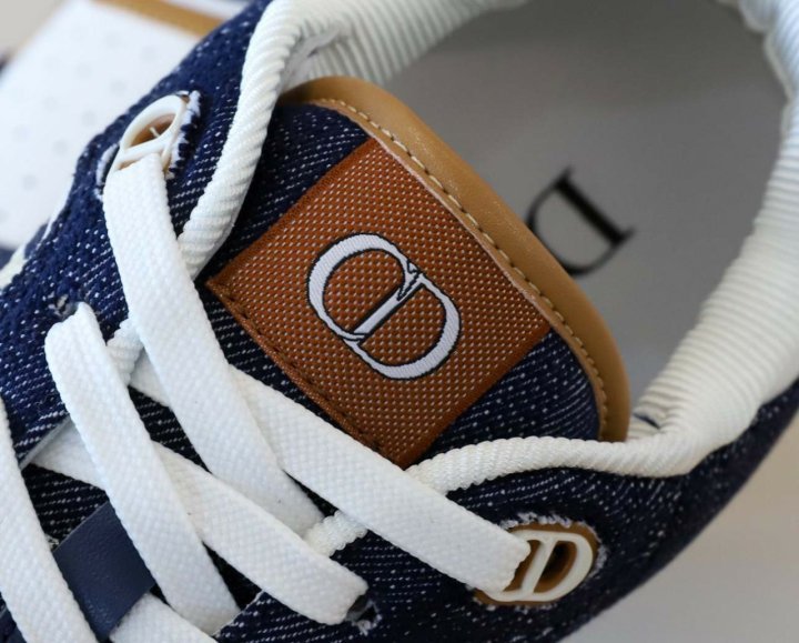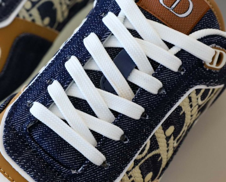 화이트 스무스 송아지 가죽 및 블루 데님 소재와 옆면의 화이트 가죽 패널 장식으로 제작되었습니다.