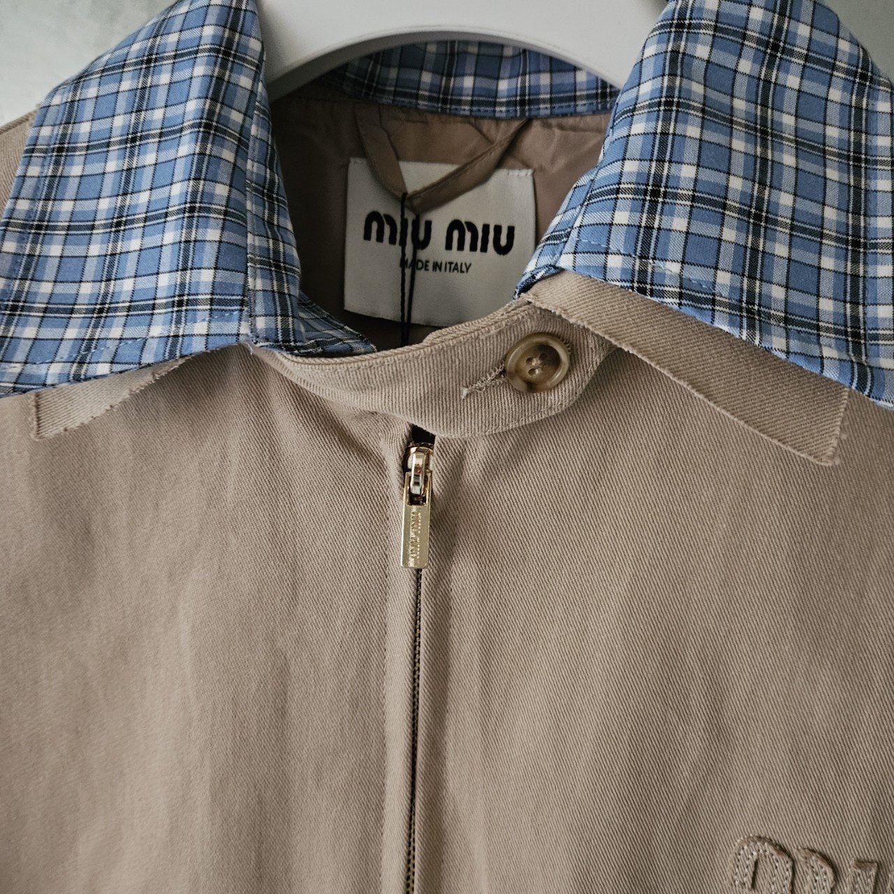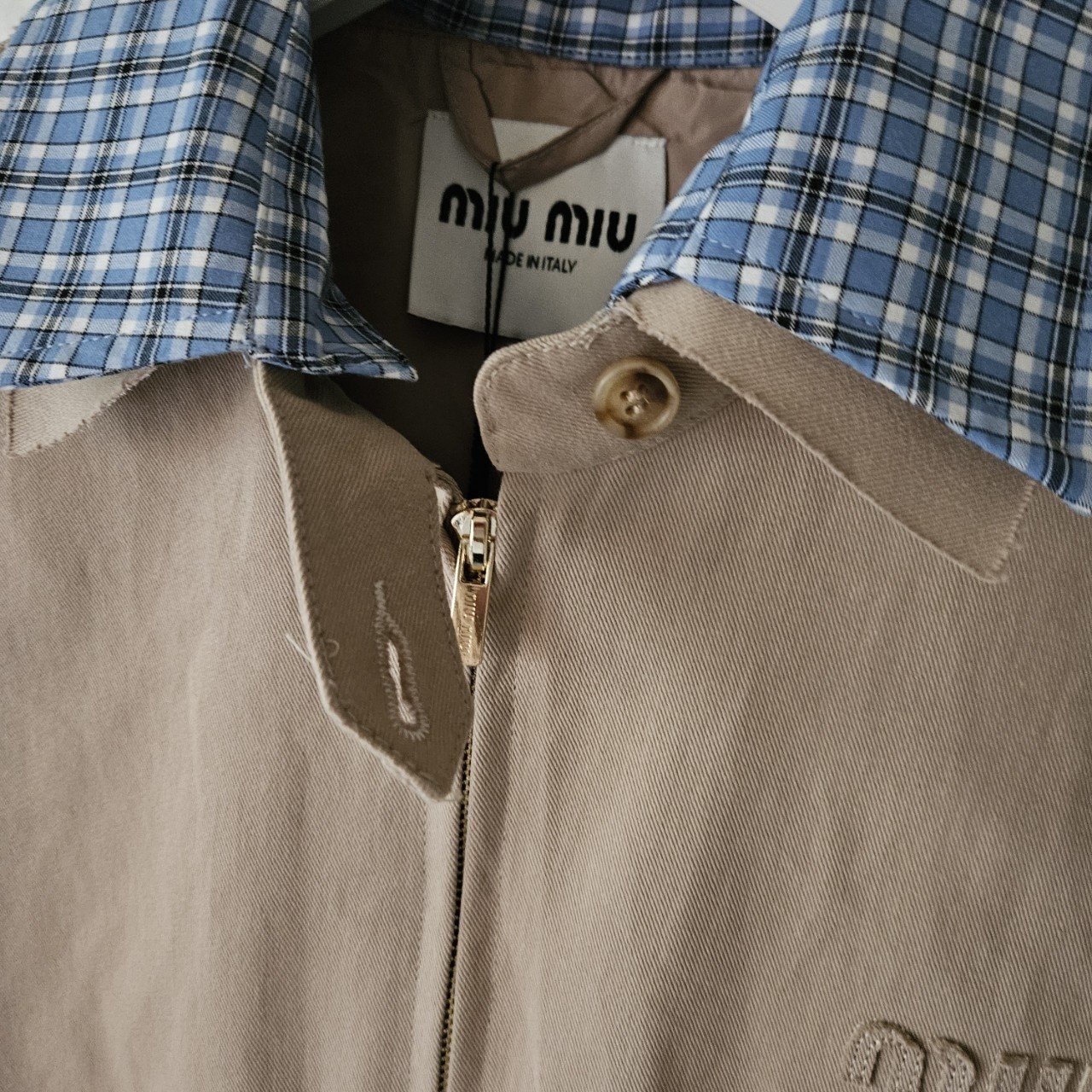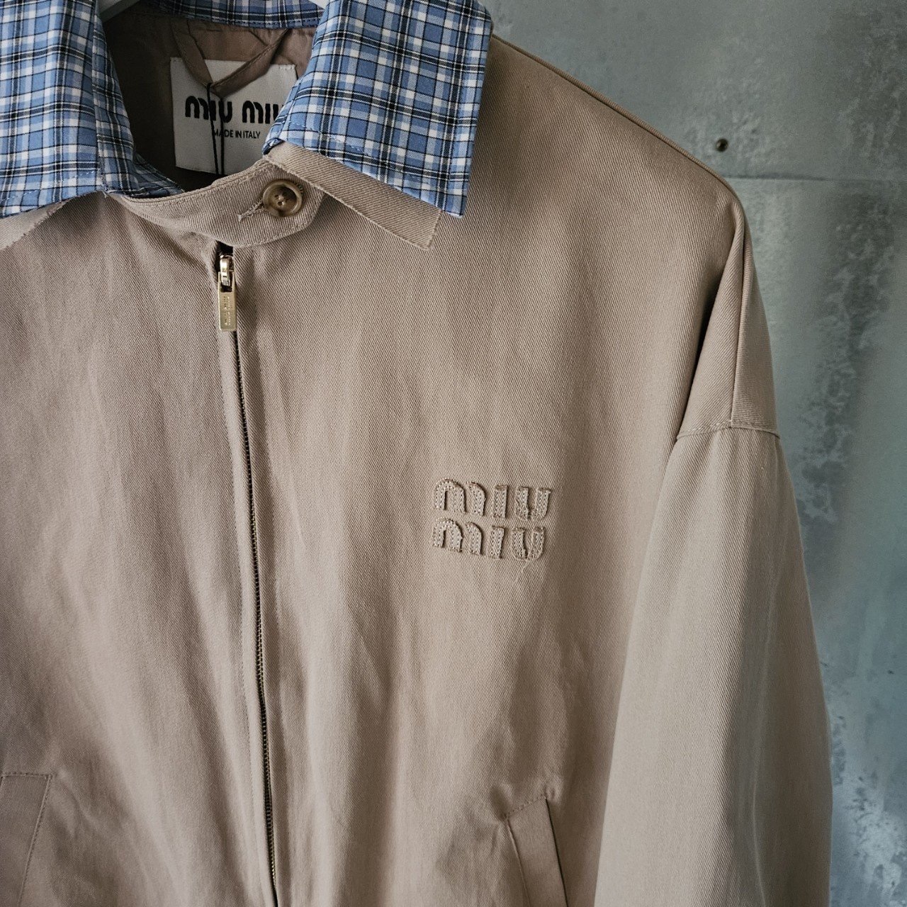 본 제품은 "미*미* 치노 블루종 자켓 으로써 정품 동일원단을 사용해 미우전문제작 공장에 오더를넣어 제작한 완벽한 상품입니다. 고급스러운 무드와 핏으로 편안하게 입으실 수 있으며 국내에서 흉내조차 내기 힘든 디테일이며 퀄리티 자부합니다.
